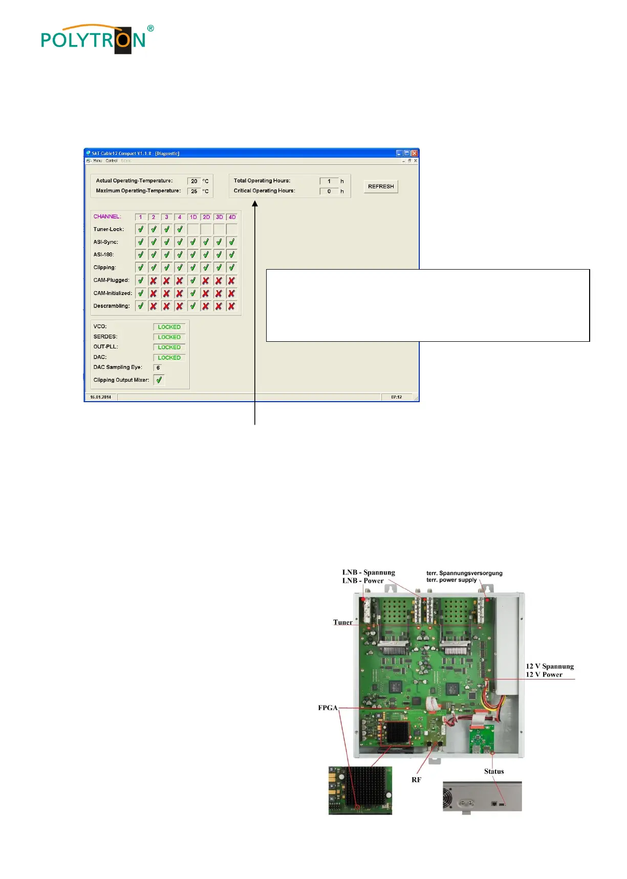 The "Diagnostic“ menu is for service purposes and can be helpful during error analysis by telephone on the