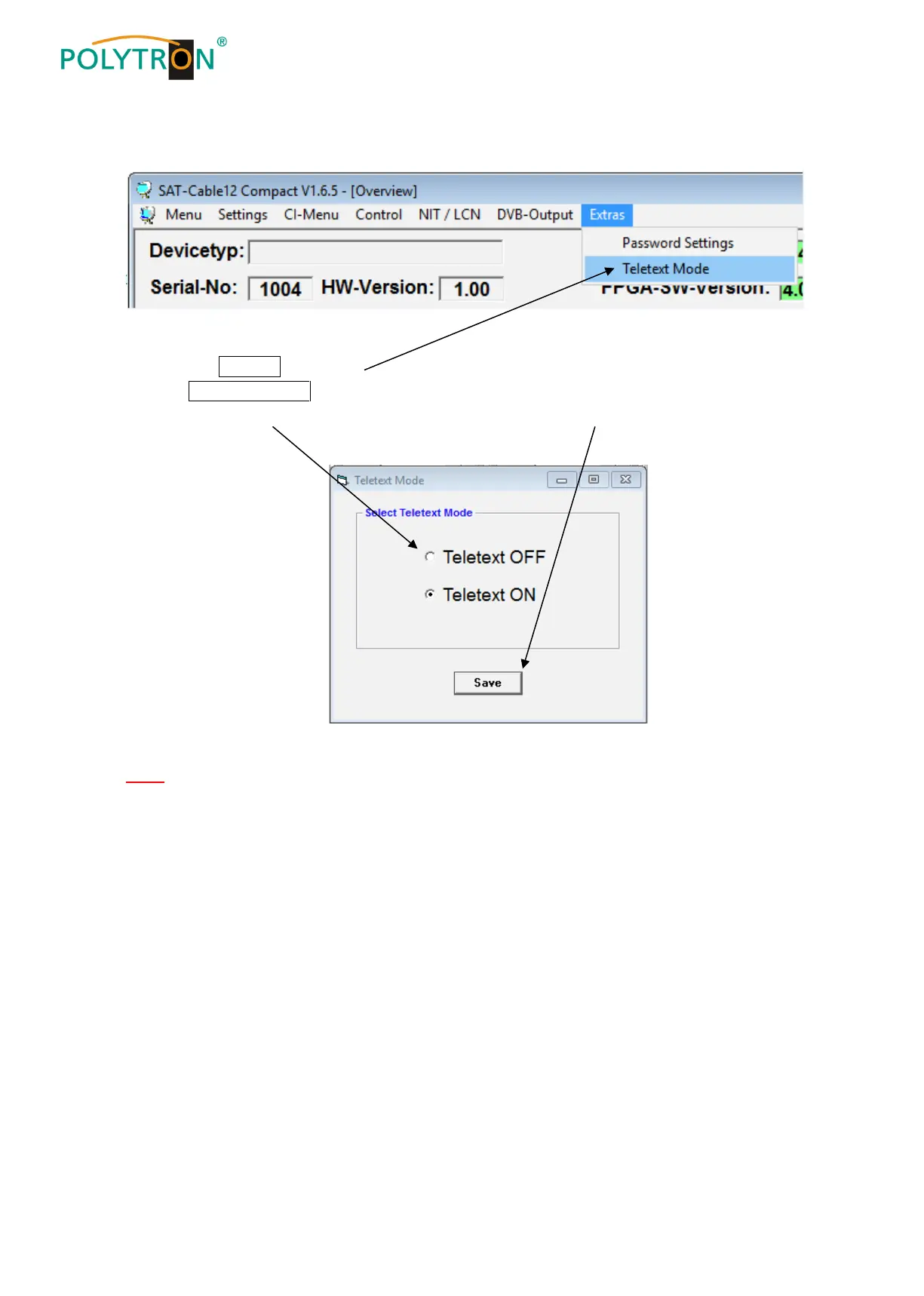 Switch teletext on or off as required and then save it by clicking Save.