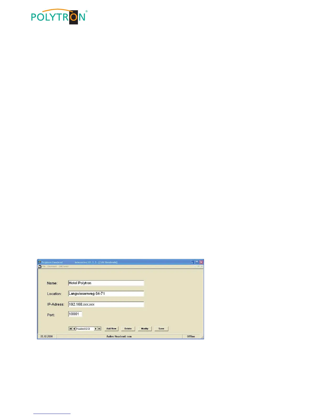 eingeben (mit „Modify“ kann eine bestehende Kopfstelle geändert und mit „Delete“ kann sie gelöscht werden).