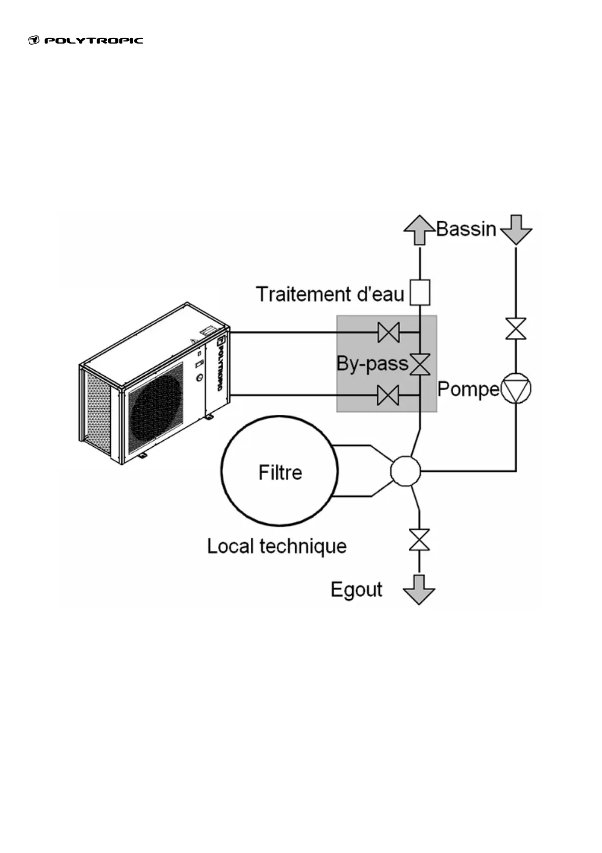 Le by-pass doit impérativement être placé après la pompe et le filtre.