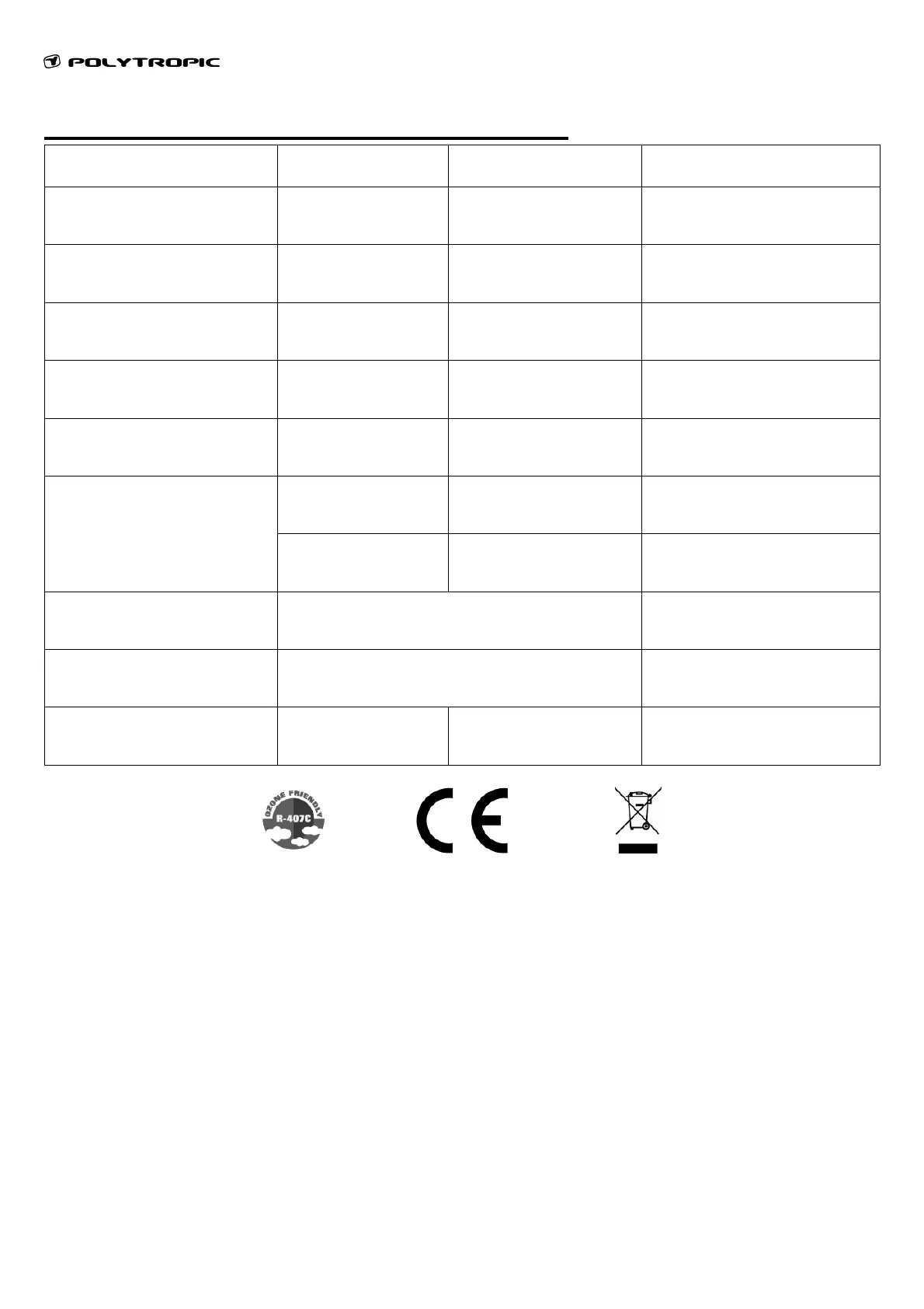Caractéristiques techniques modèles R-PAC
