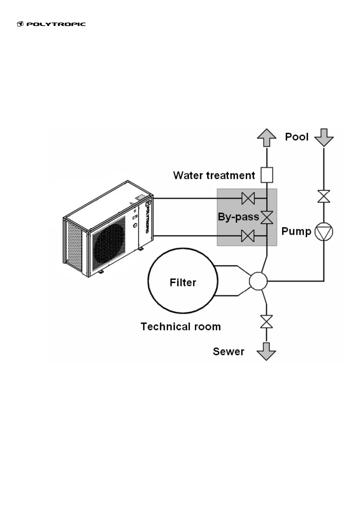 The heat pump is connected to a filtration circuit trough a by-pass.