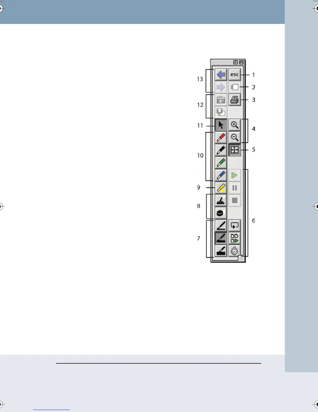 13 Forward/Back: Scroll through snapshots in the open Webster file.