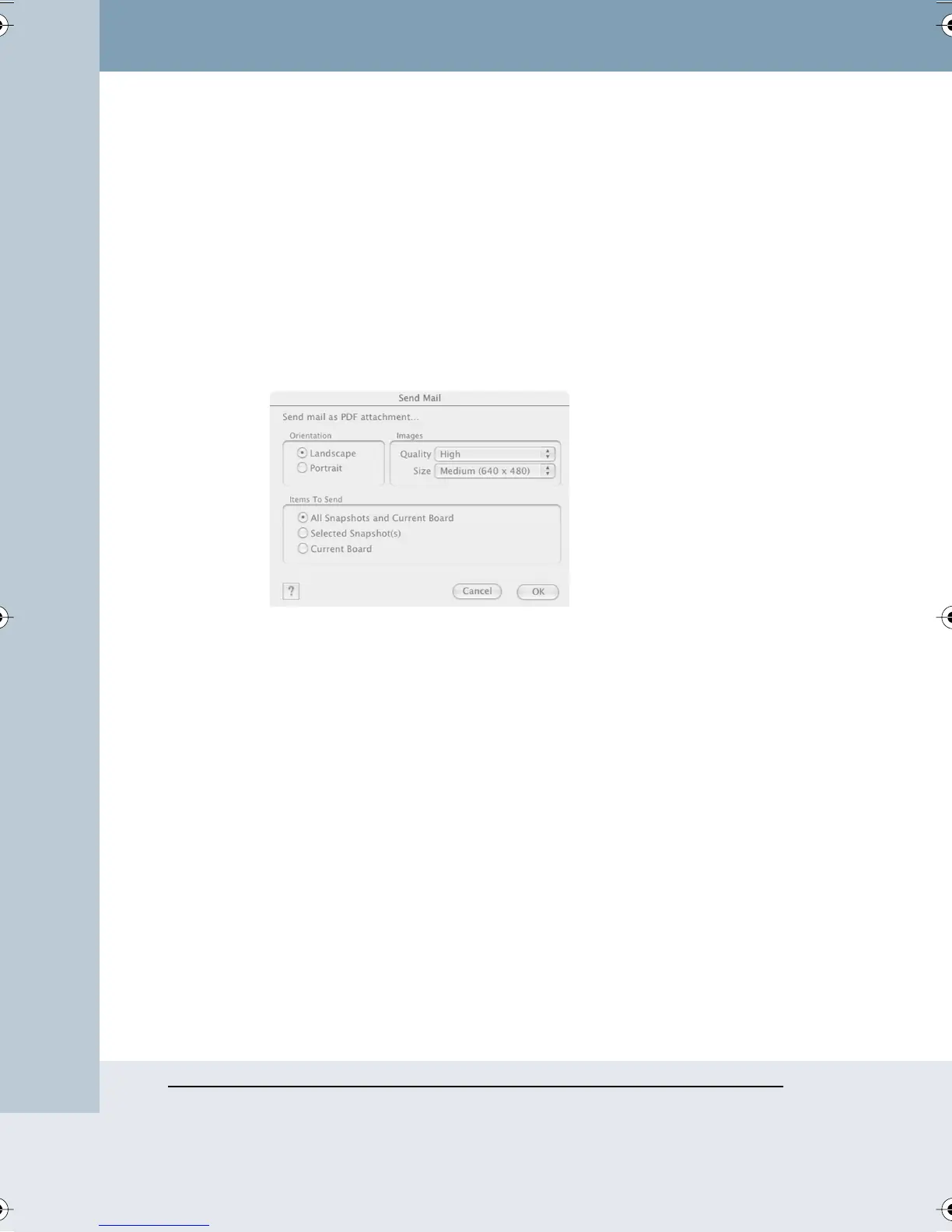 2 Choose “Send Mail” from the File menu. The following dialog appears