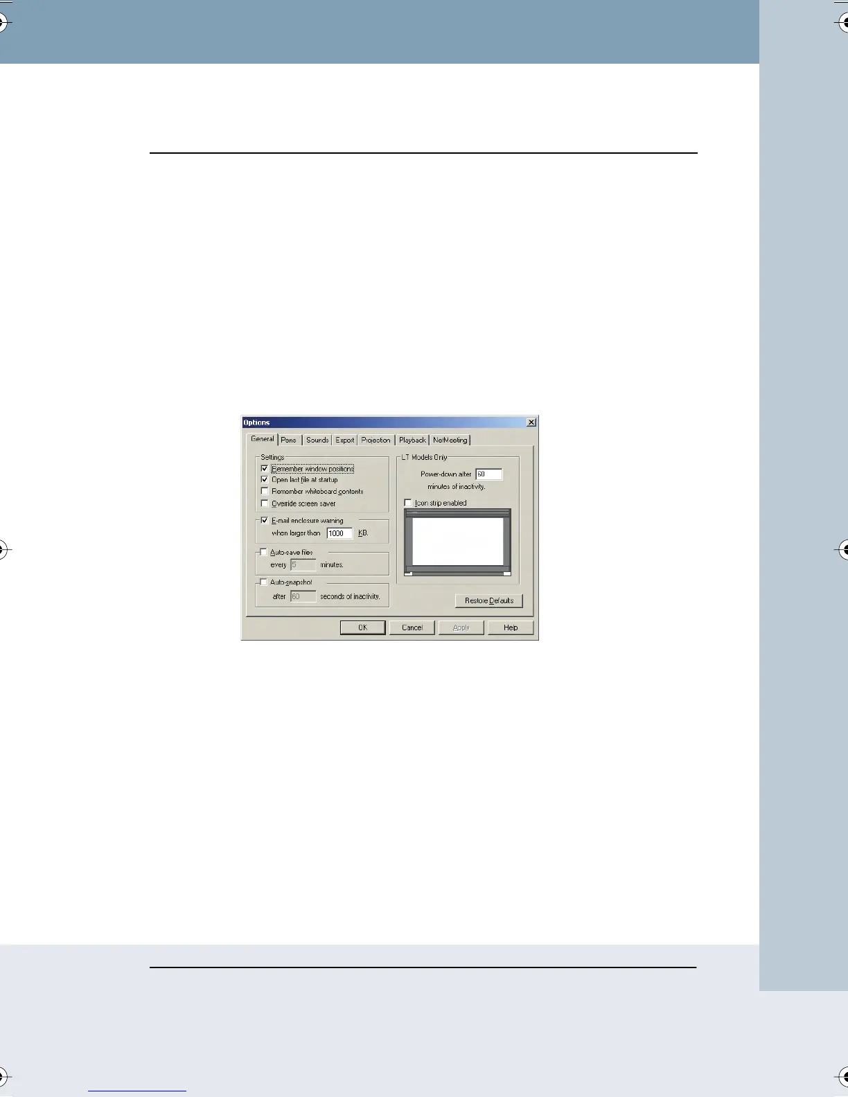 Options on the General tab enable you to specify settings that apply to
