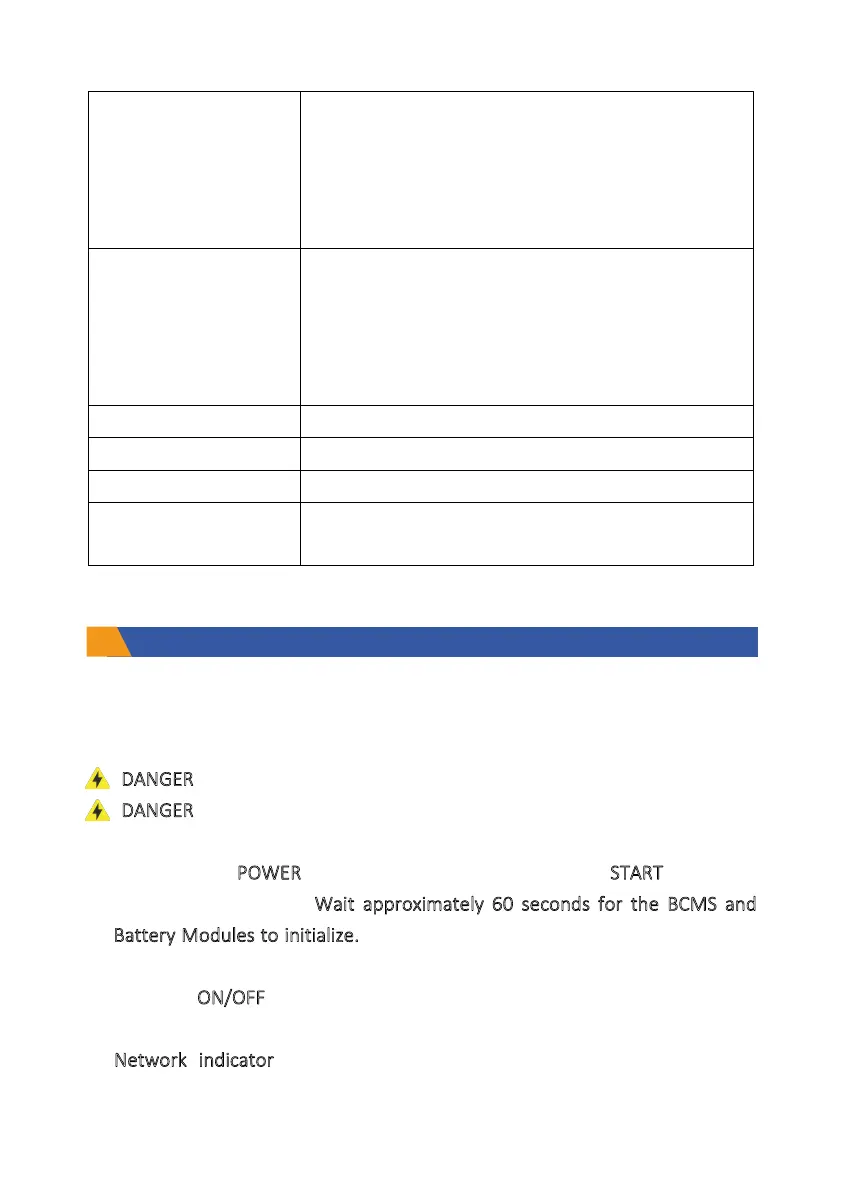 Battery Modules to initialize. All LED indicators on battery modules shall be