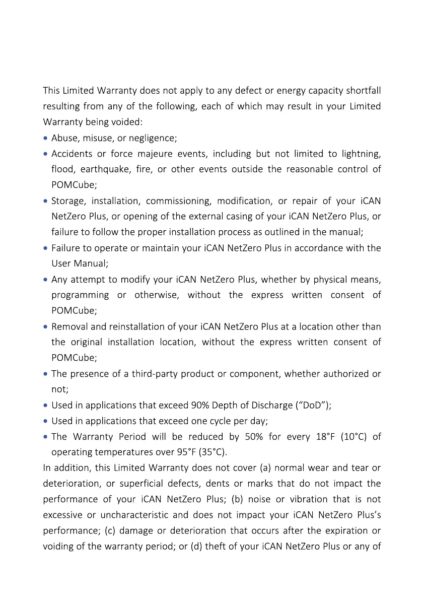 POMCube iCAN NetZero Plus - Warranty Exclusions