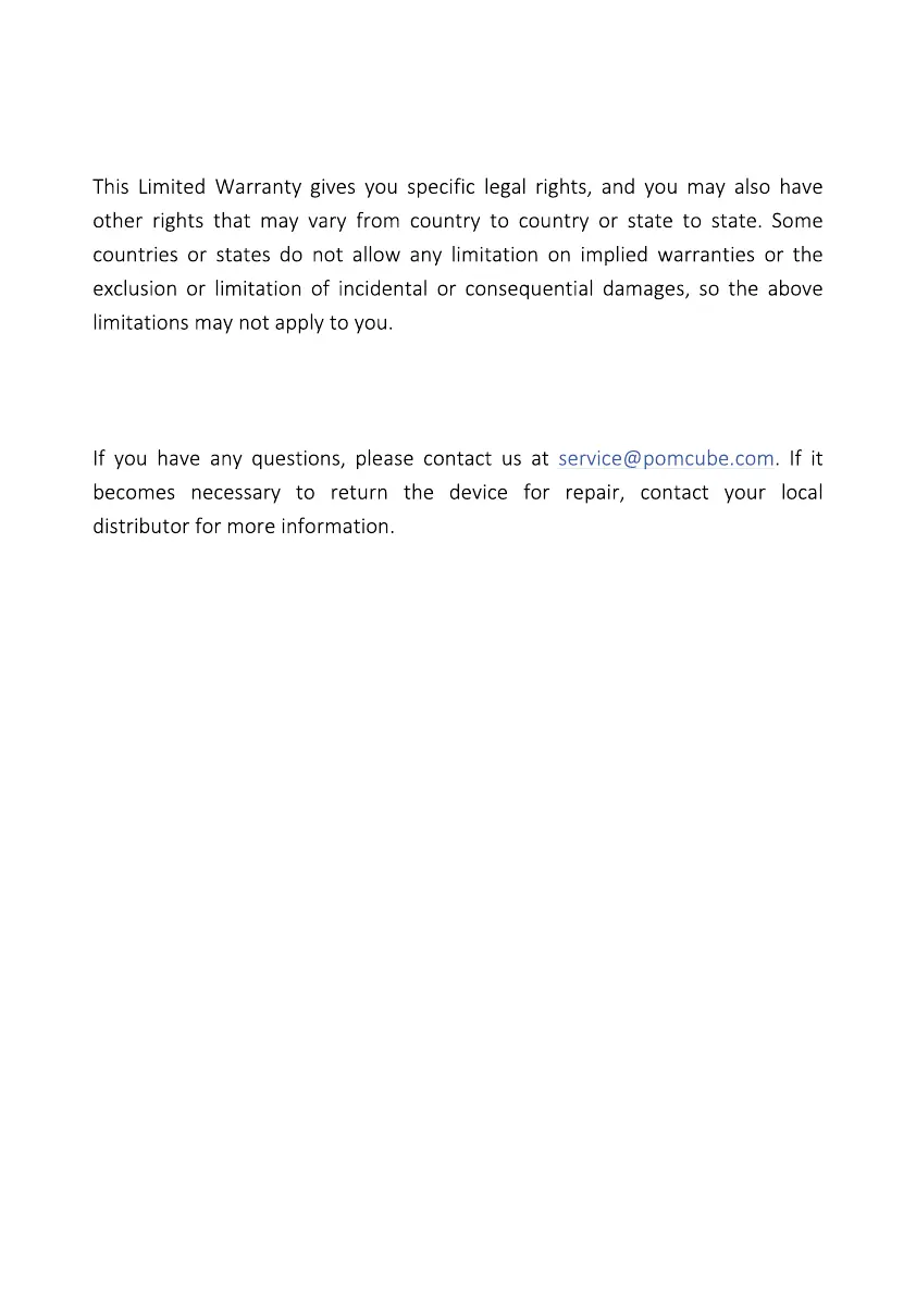POMCube iCAN NetZero Plus - Legal Rights; Service