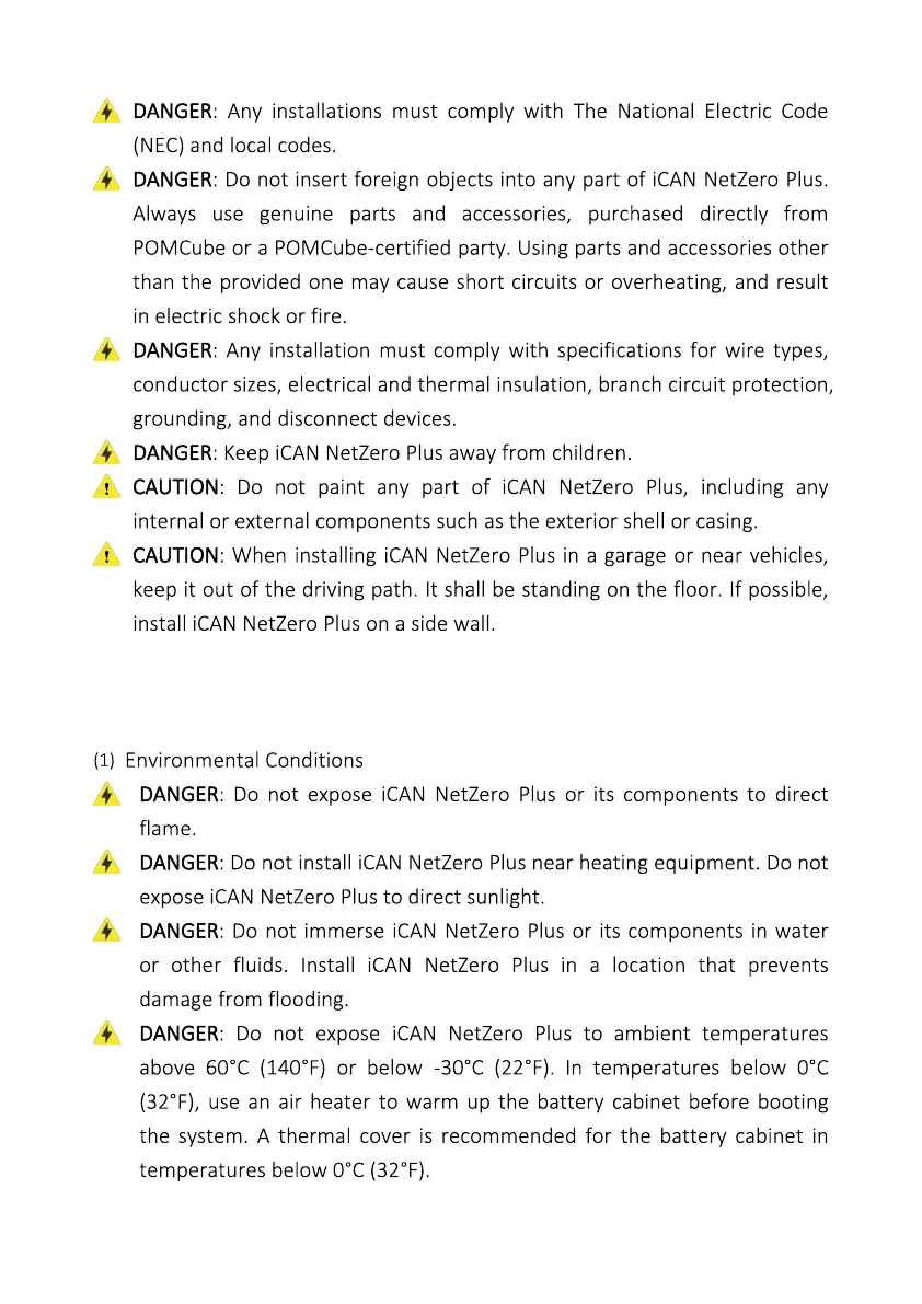POMCube iCAN NetZero Plus - Installa�On Condi�Ons