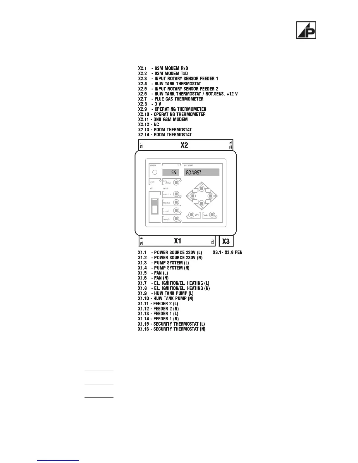 connects the operating (boiler's) thermometer, emergency thermostat, indoor