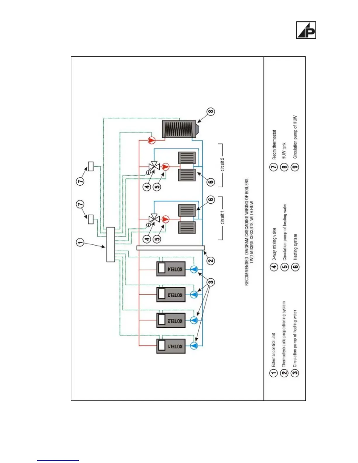 Figure number 16 - Recommended wiring diagram of boiler – cascading wiring