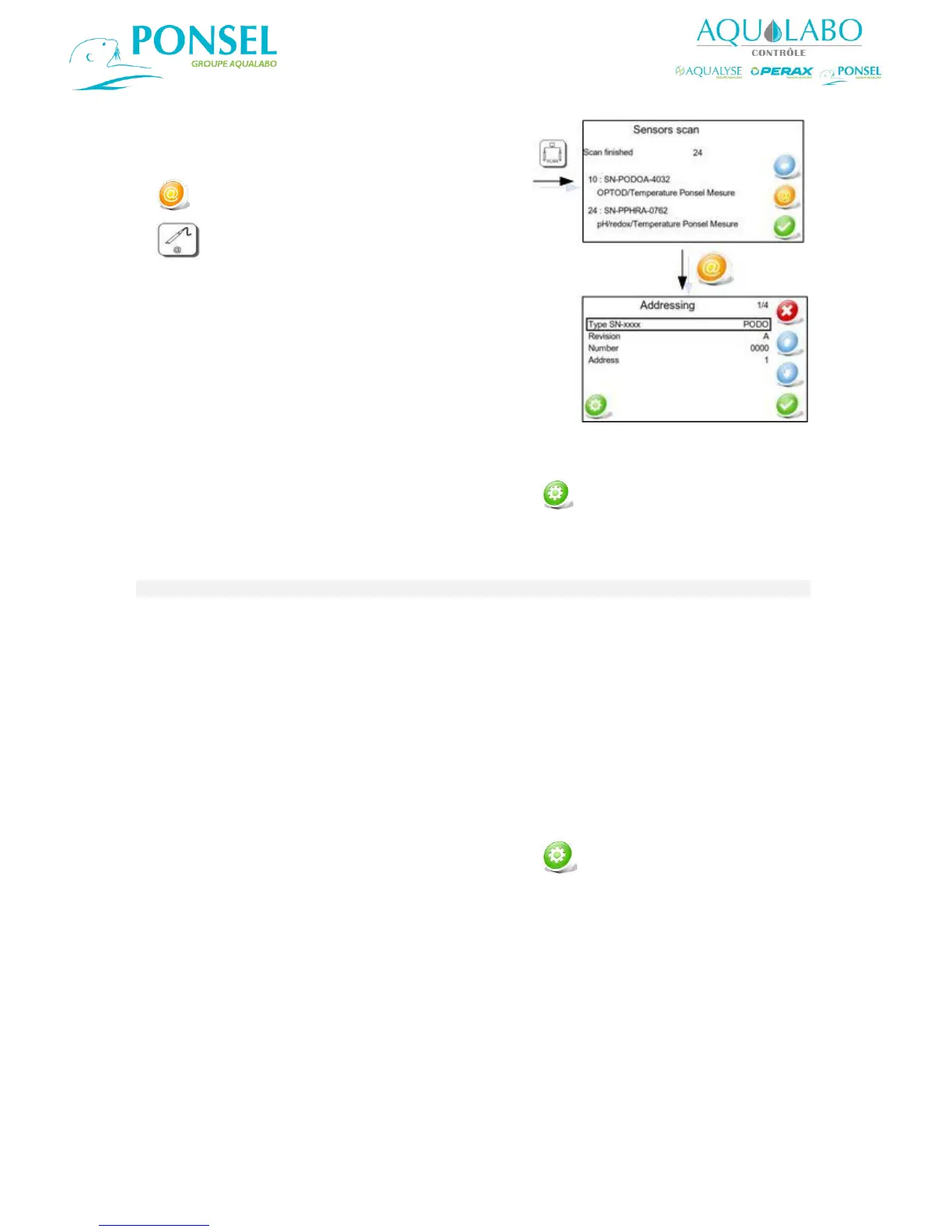 The first 3 lines of the "Addressing" window are used to define the serial number of the sensor affected