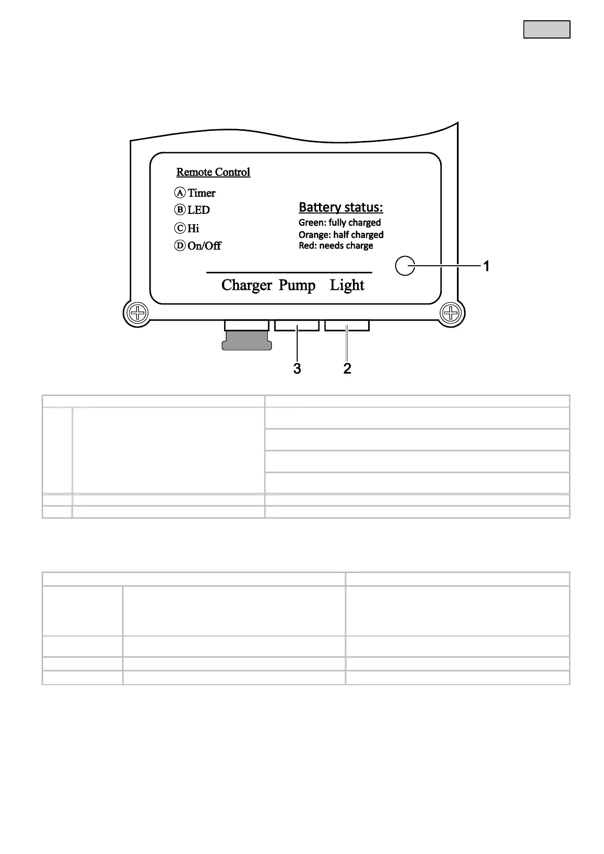 1 LED display for the rechargeable battery capacity LED is lit green: The battery is charged.
