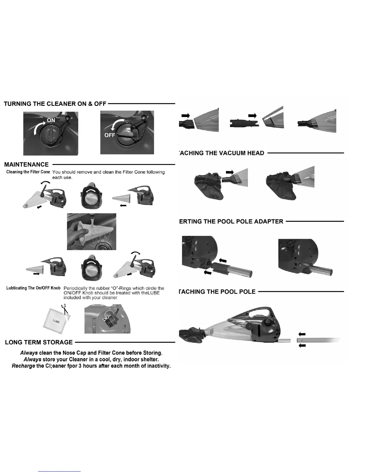 Pool Blaster iVAC M3 - Operating the Cleaner; Turning the Cleaner On and Off; Maintenance and Storage; Cleaning the Filter Cone