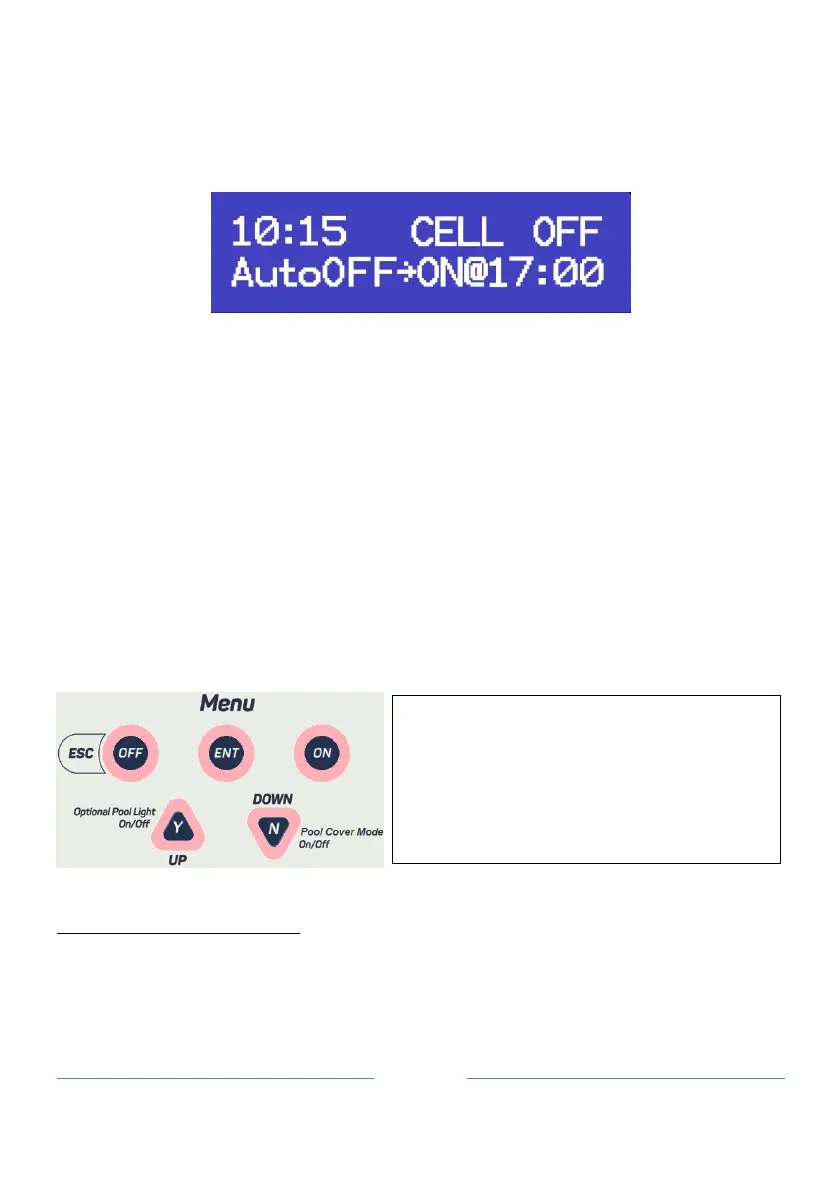 The second line of the display shows the automatic timer status.