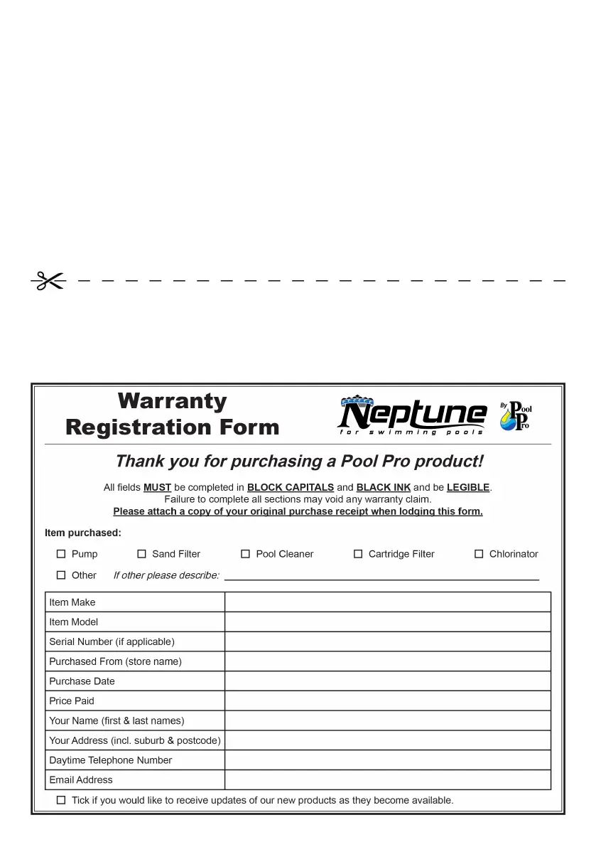 under warranty can only be performed by an authorised nominated Pool Pro repair
