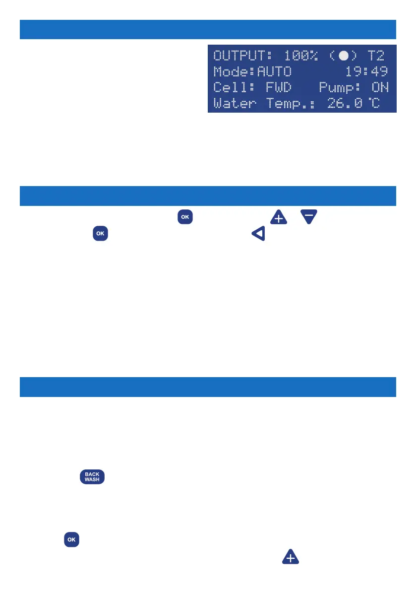 screen will display “BACKWASH MODE”.