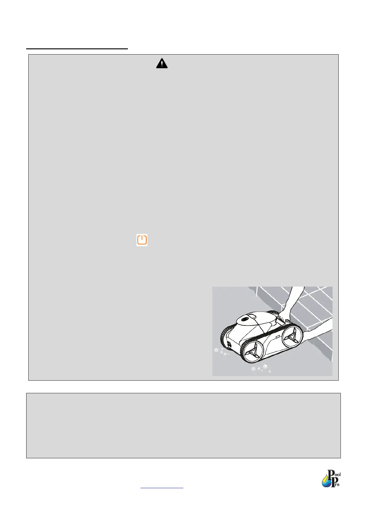 pool water. Then use your hands to lift the robot onto the edge of the pool, using the robot’s handle. Do not