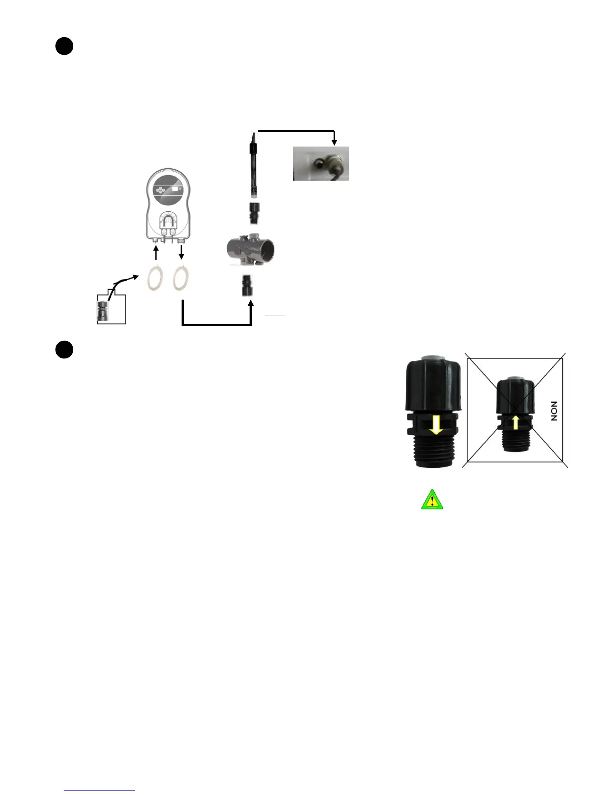 ✓ Atornillar bajo lleva-accesorios y ajustar la salida de la bomba
