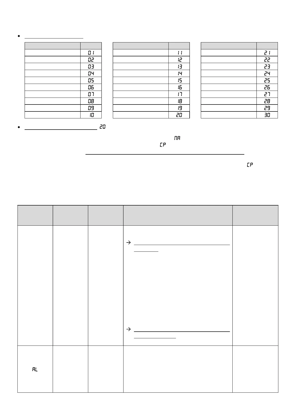 Posibles configuraciones : por código, según las tablas siguientes.