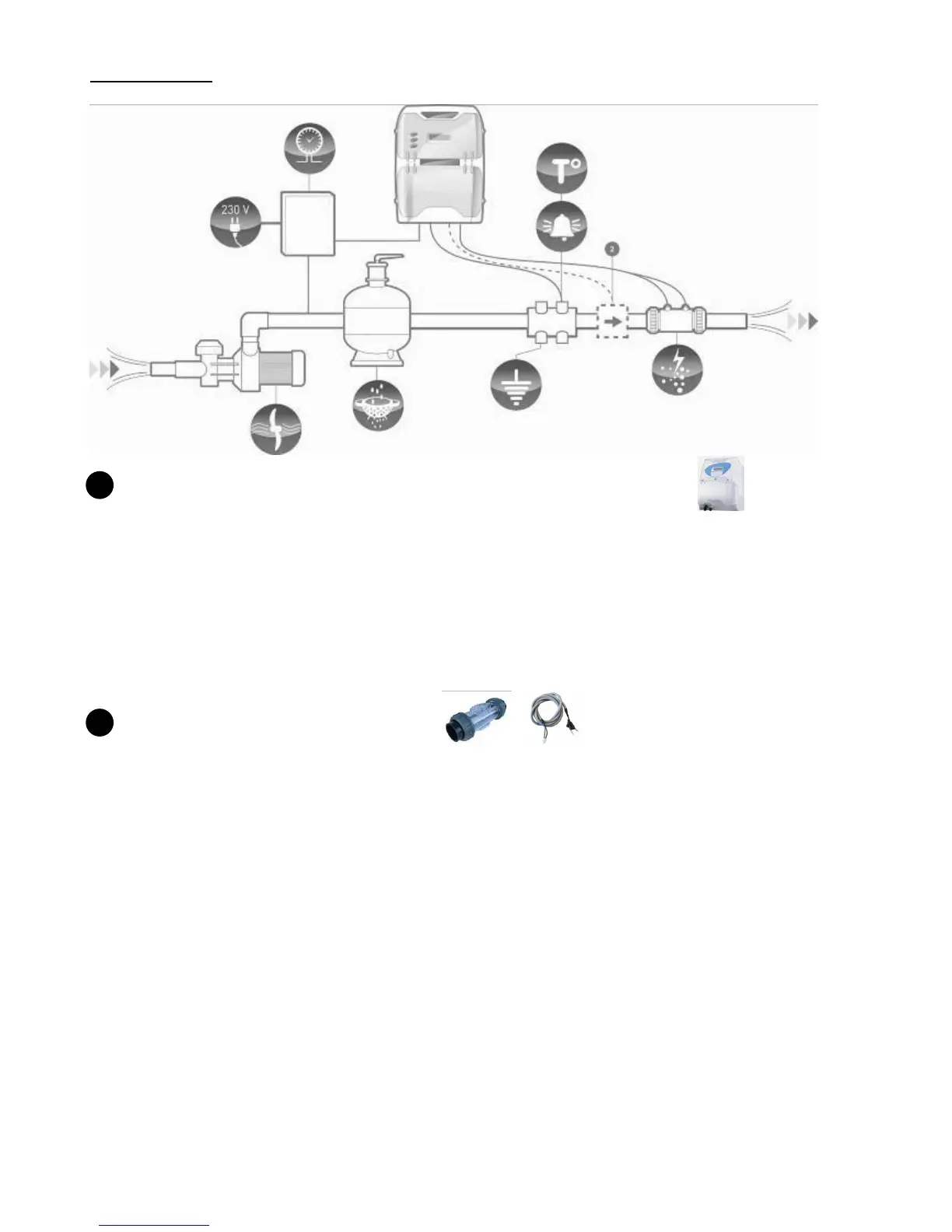 2/ Connect the chlorinator controller box to the electrical distribution box permanently, controlled by the