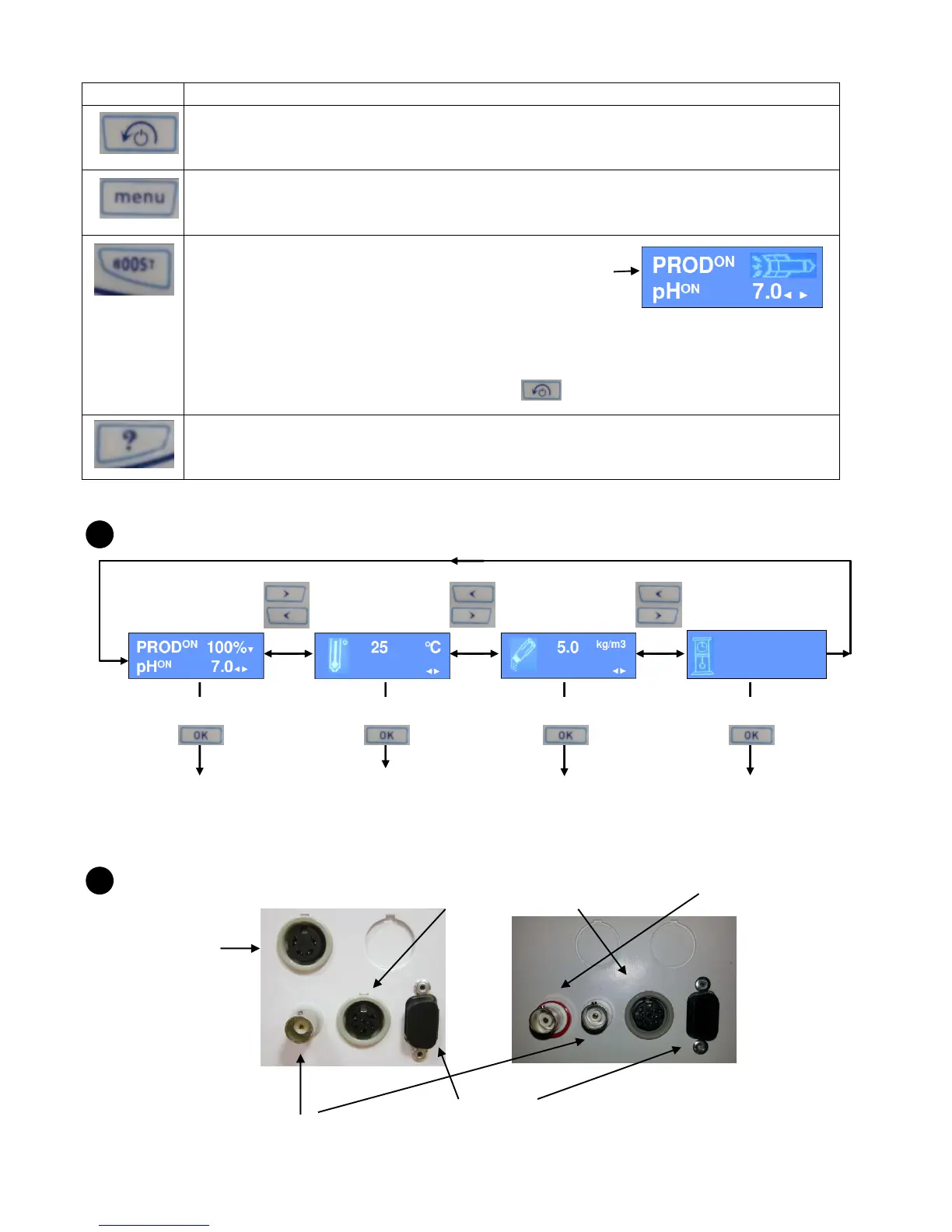 Short press on : shows advices about the use of the device.