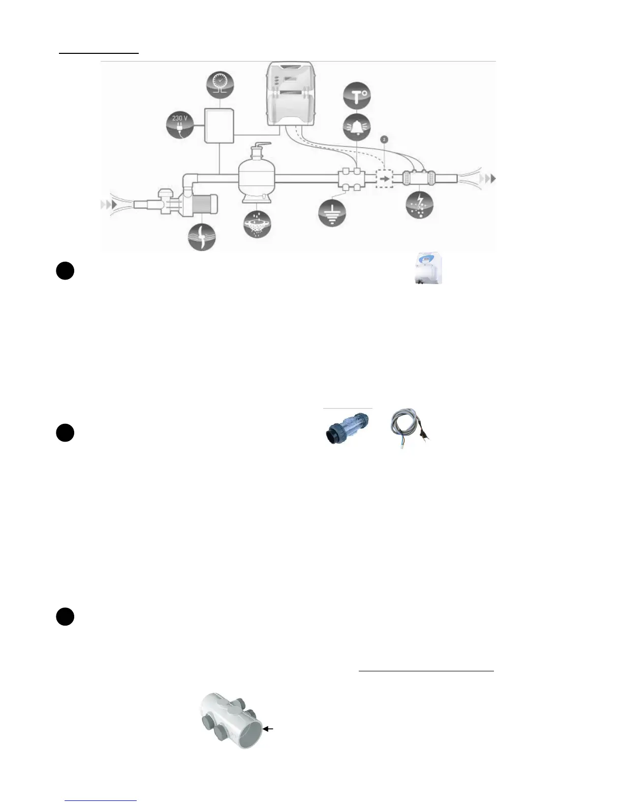 1/ Choisir un emplacement facilement accessible, proche du coffret électrique de la filtration. Installer le
