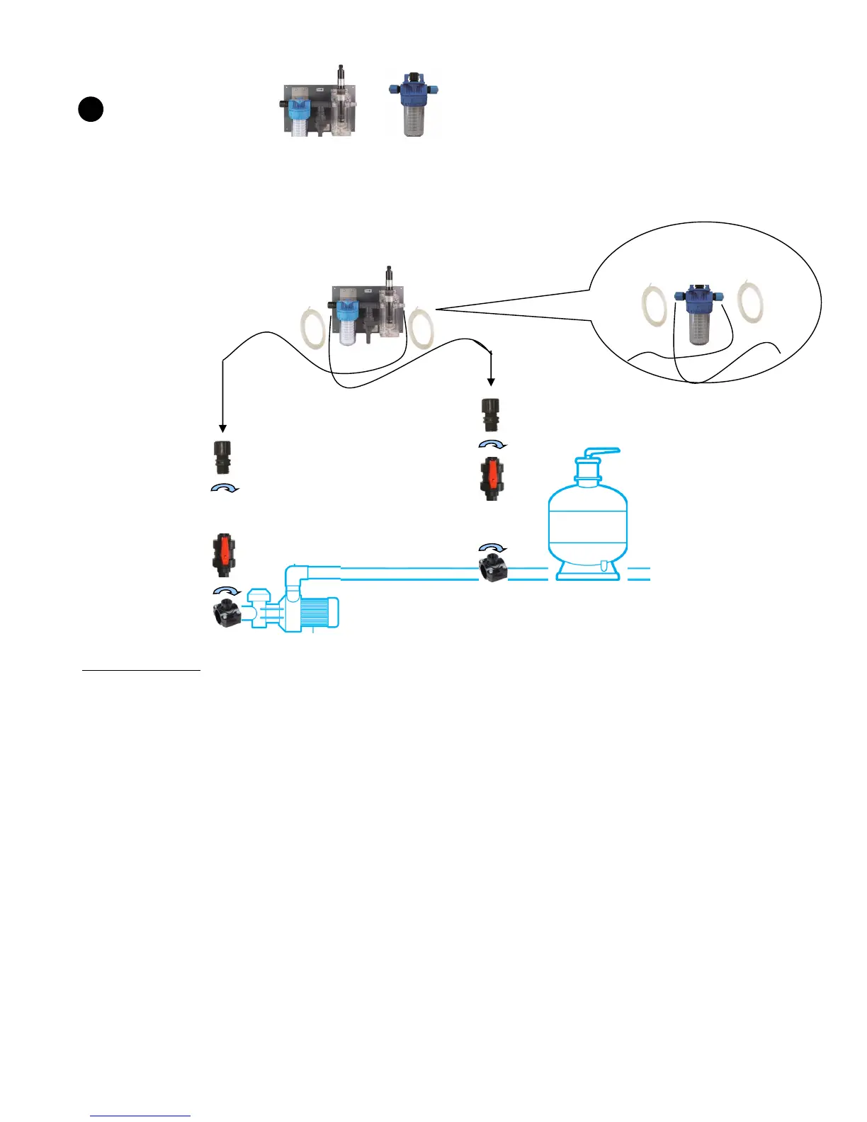 ✓ Modelo Ampéro únicamente: El flujo recomendado en el circuito de derivación es de 30l/h. La medida de