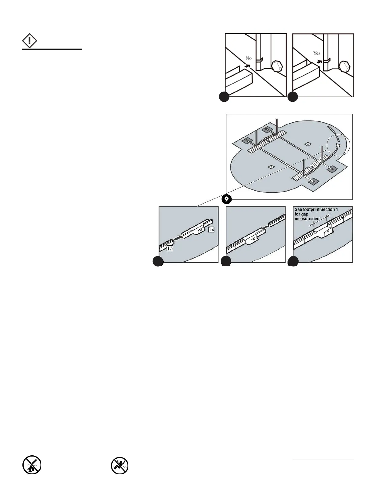 h. Insert the end rails. Leave a gap between the ends of the rails, see Section 1 footprint
