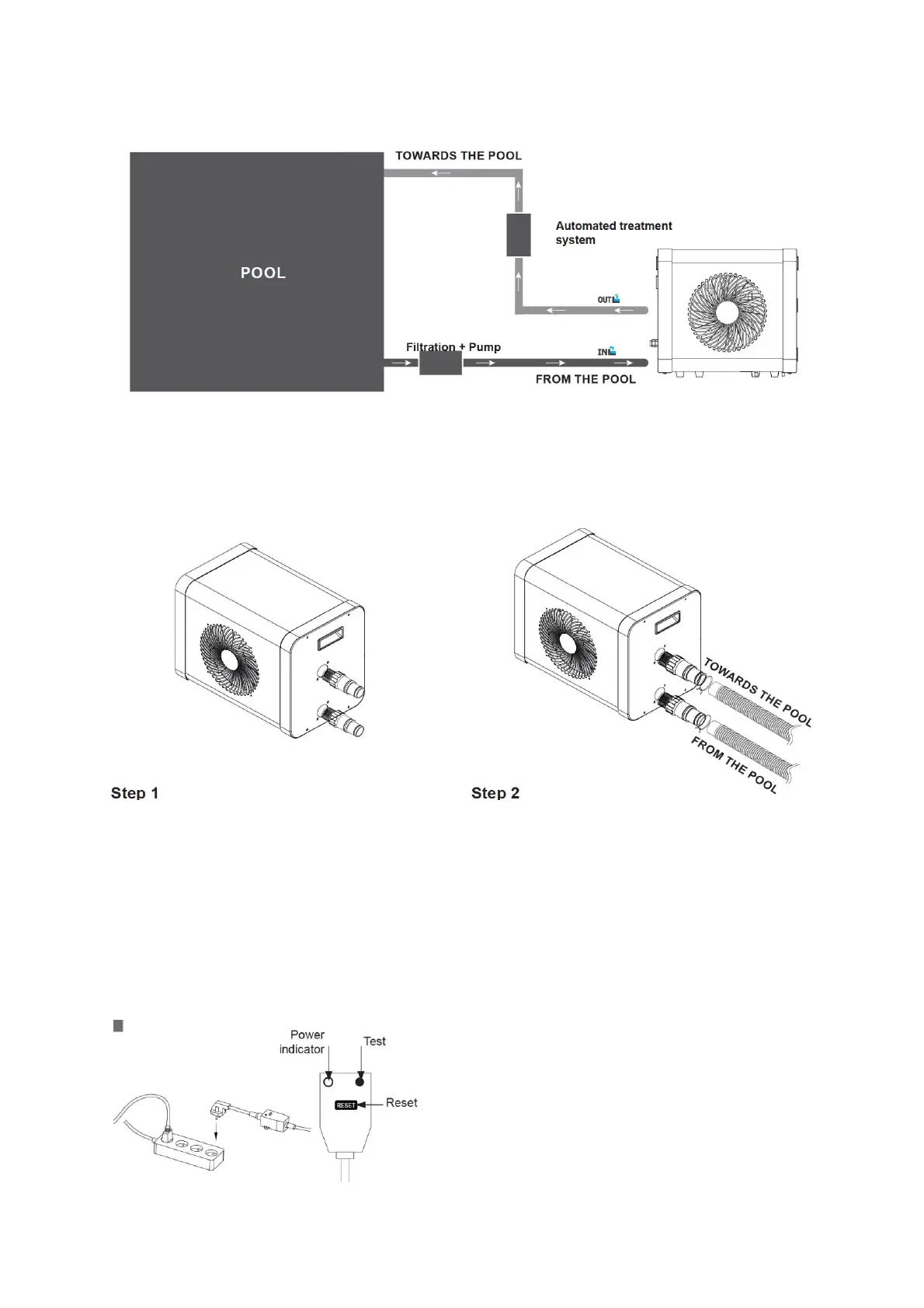 wtyczka jest połączona z uziemieniem. Pompa filtra powinna pracować jednocześnie z pompą ciepła. Dlatego należy podłączyć