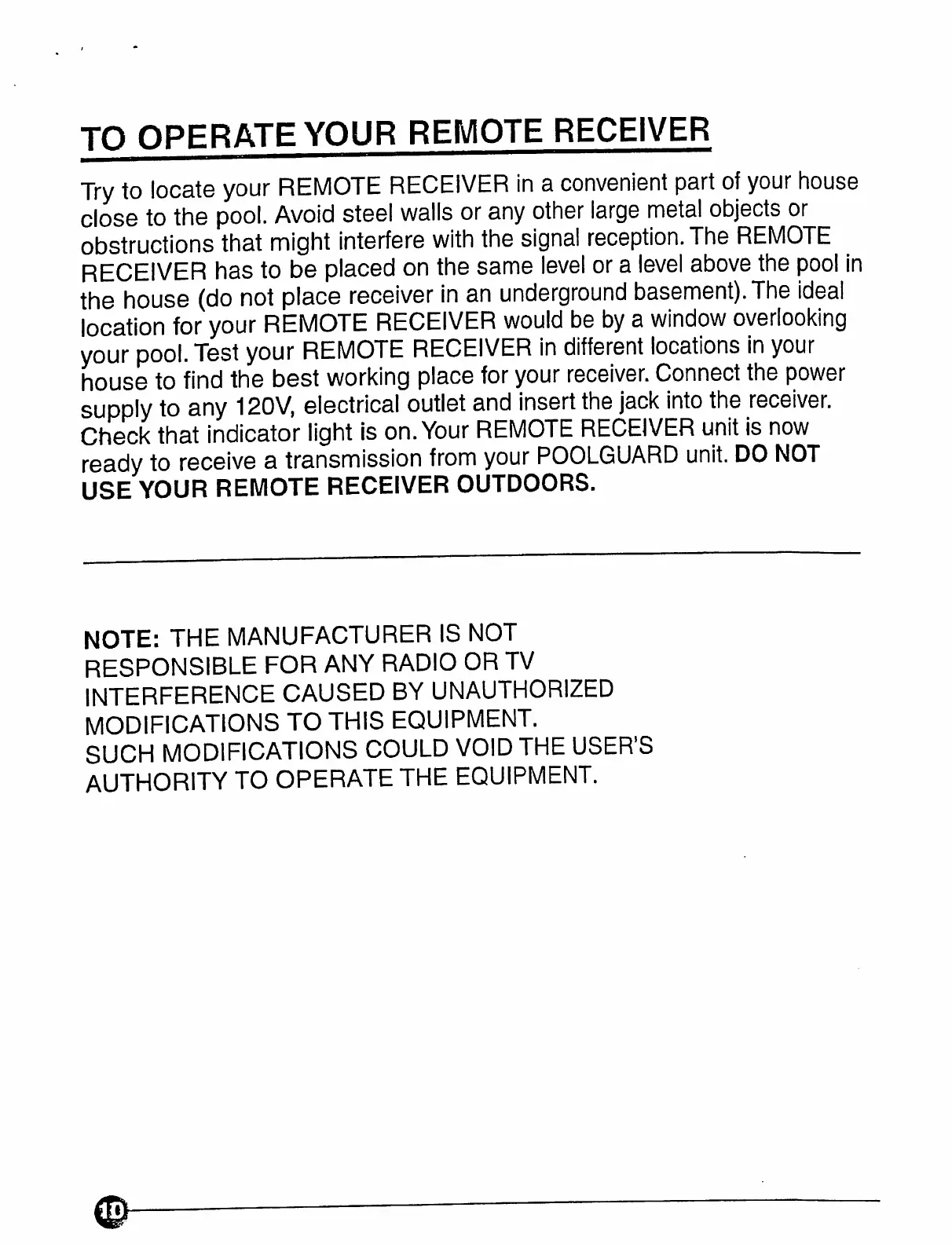 Poolguard PGRM - 2 - TO OPERATE YOUR REMOTE RECEIVER
