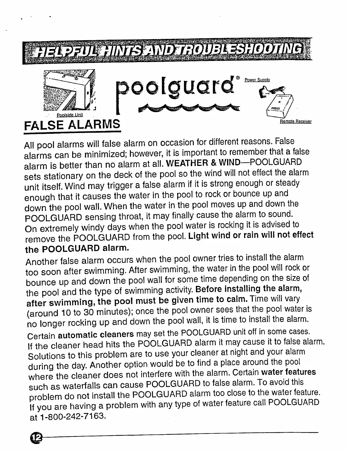 Poolguard PGRM - 2 - HELPFUL HINTS AND TROUBLESHOOTING; FALSE ALARMS