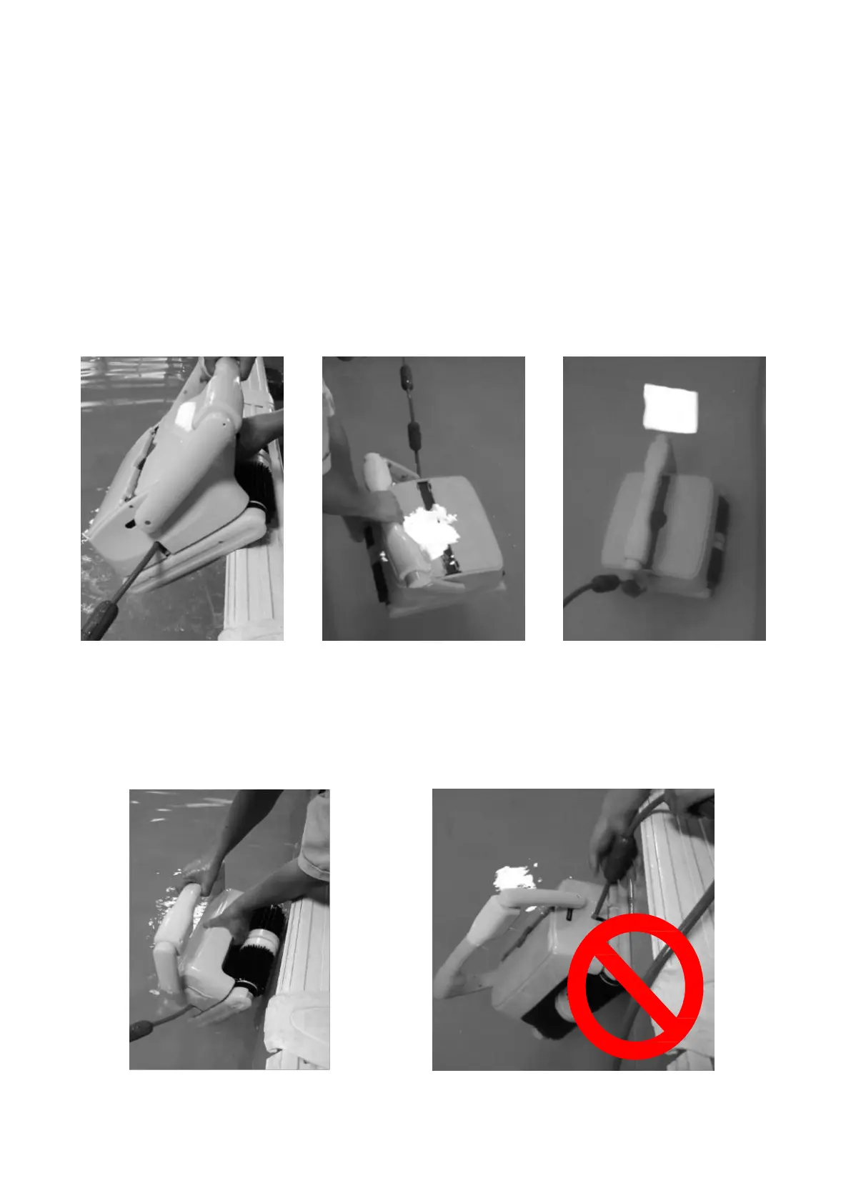 scratches to the pool. Hold the top handle and put it into the pool. Let the cleaner immerse into the pool
