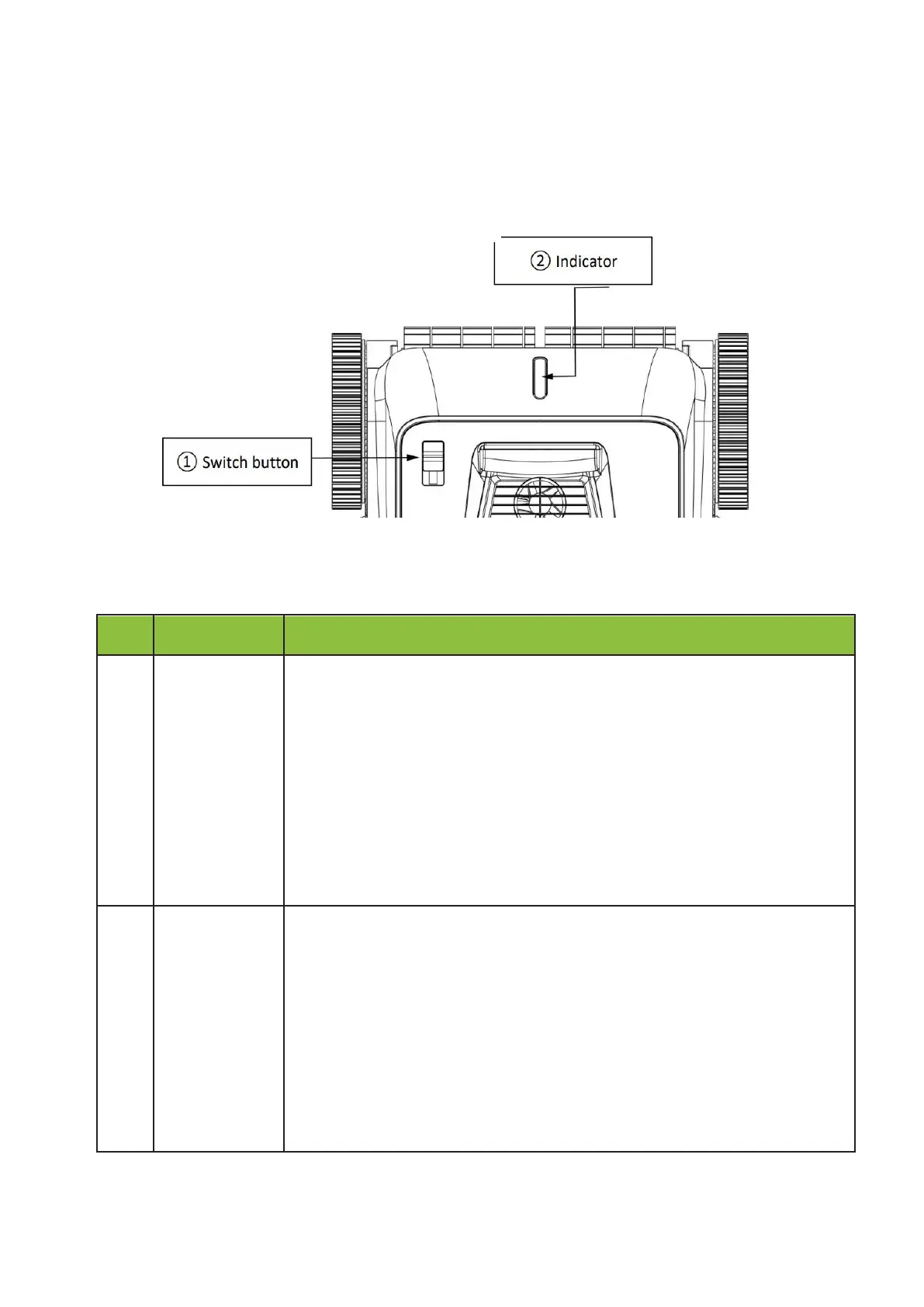 Tryck knappen uppåt för att slå på roboten (blå indikator).