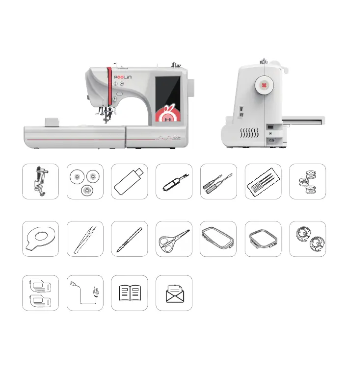 Bobbin cover*2 Power cable User manual An envelope