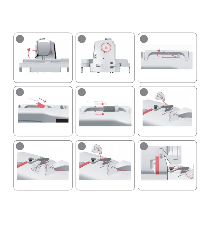 Lift up the spool pin