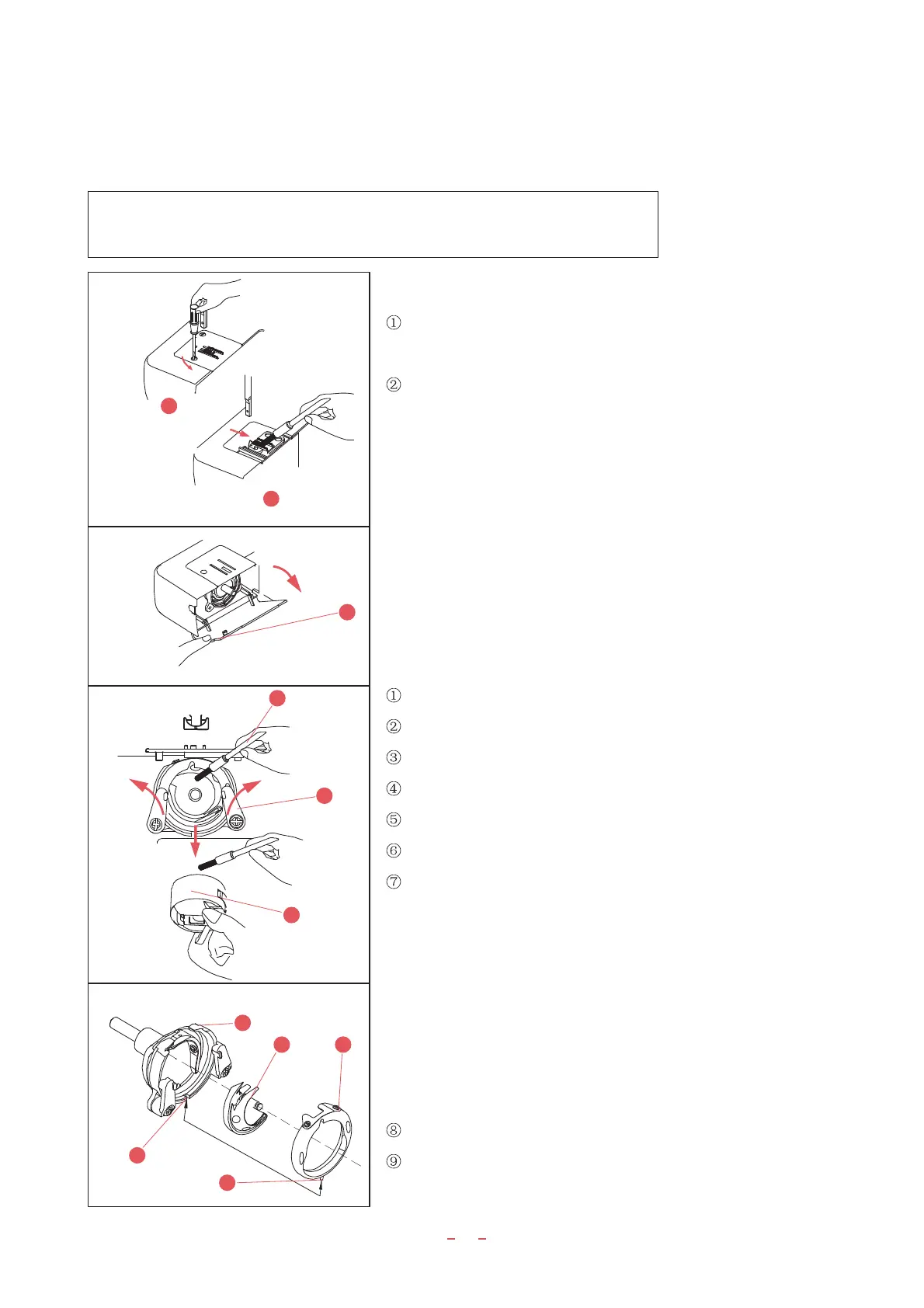 (3) Open bobbin case latch, take out bobbin case, open stopper of