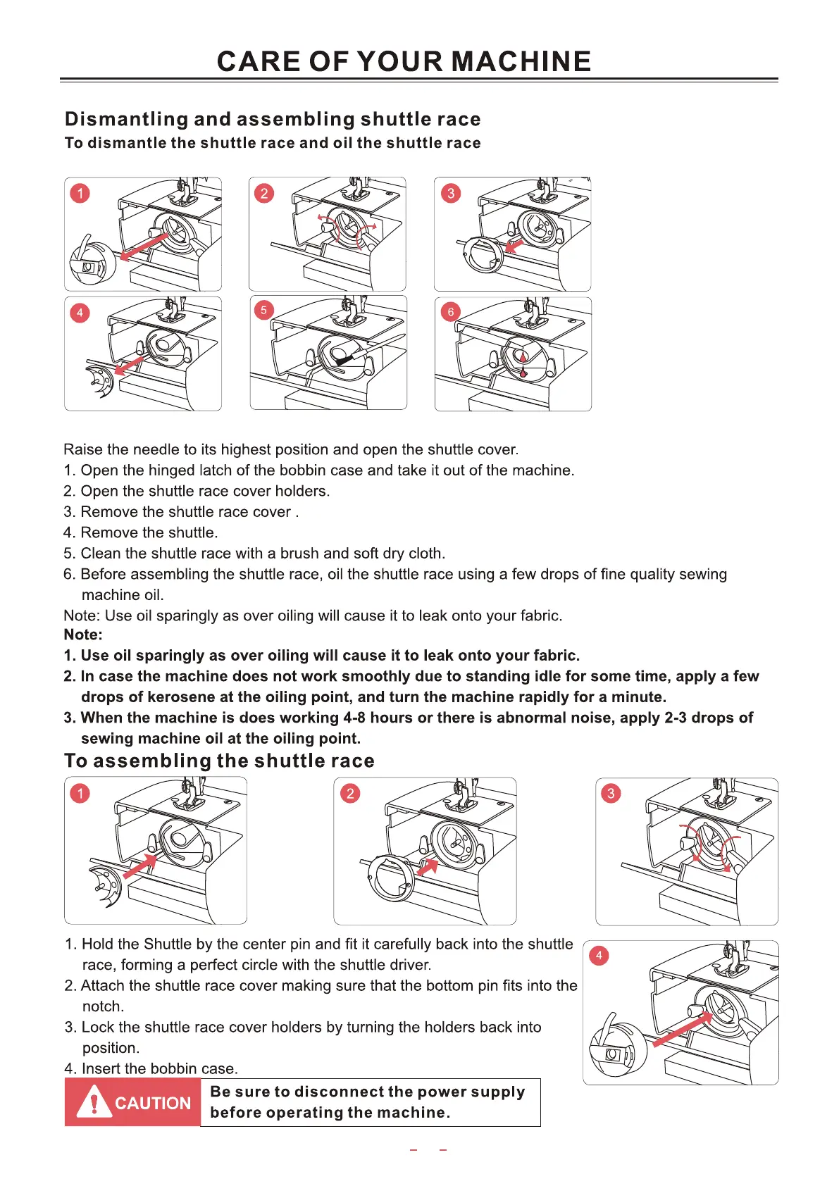POOLiN EOC990 - Care of Your Machine; Shuttle Race Maintenance