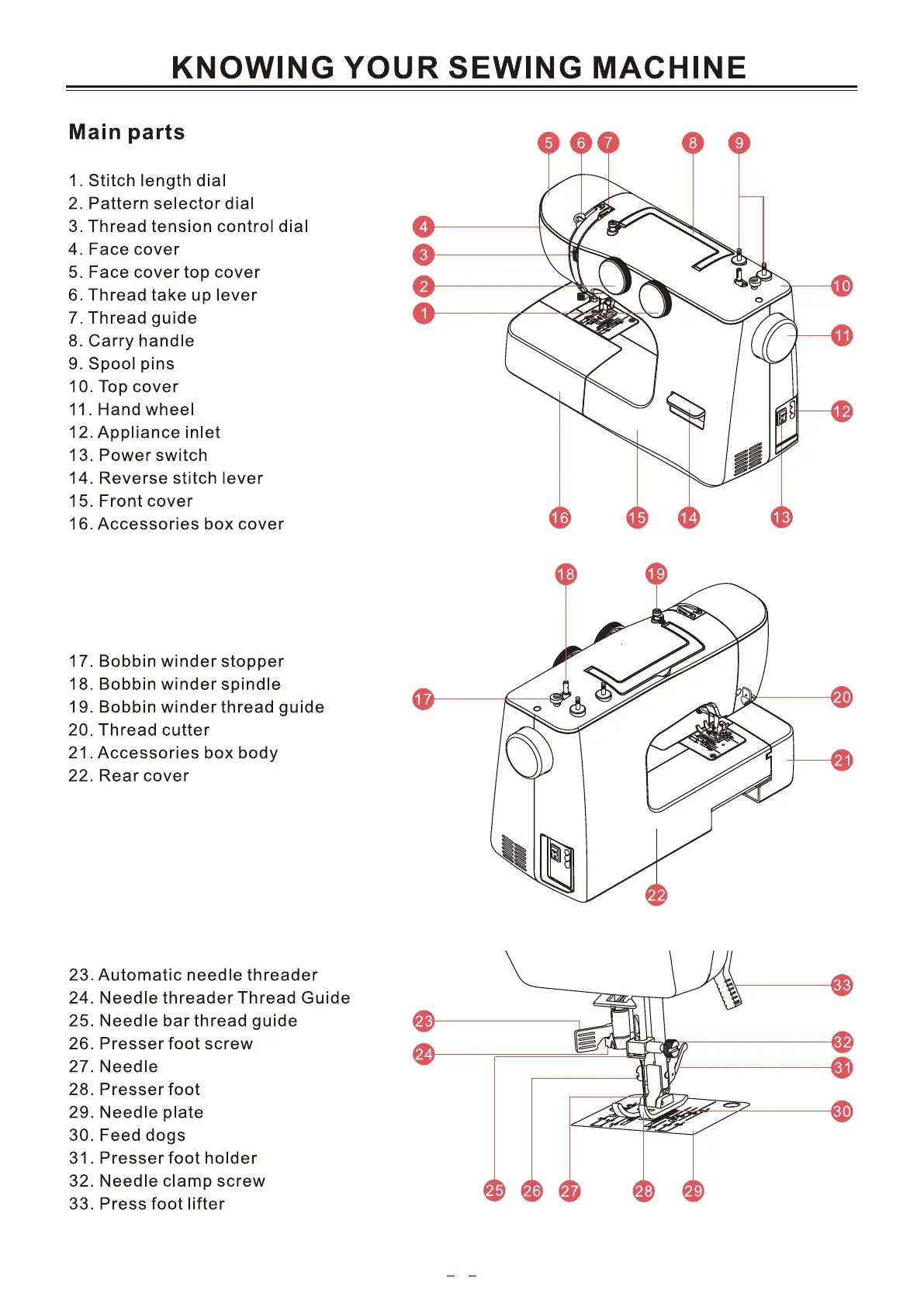 POOLiN EOC990 - Knowing Your Sewing Machine; Main Parts Identification