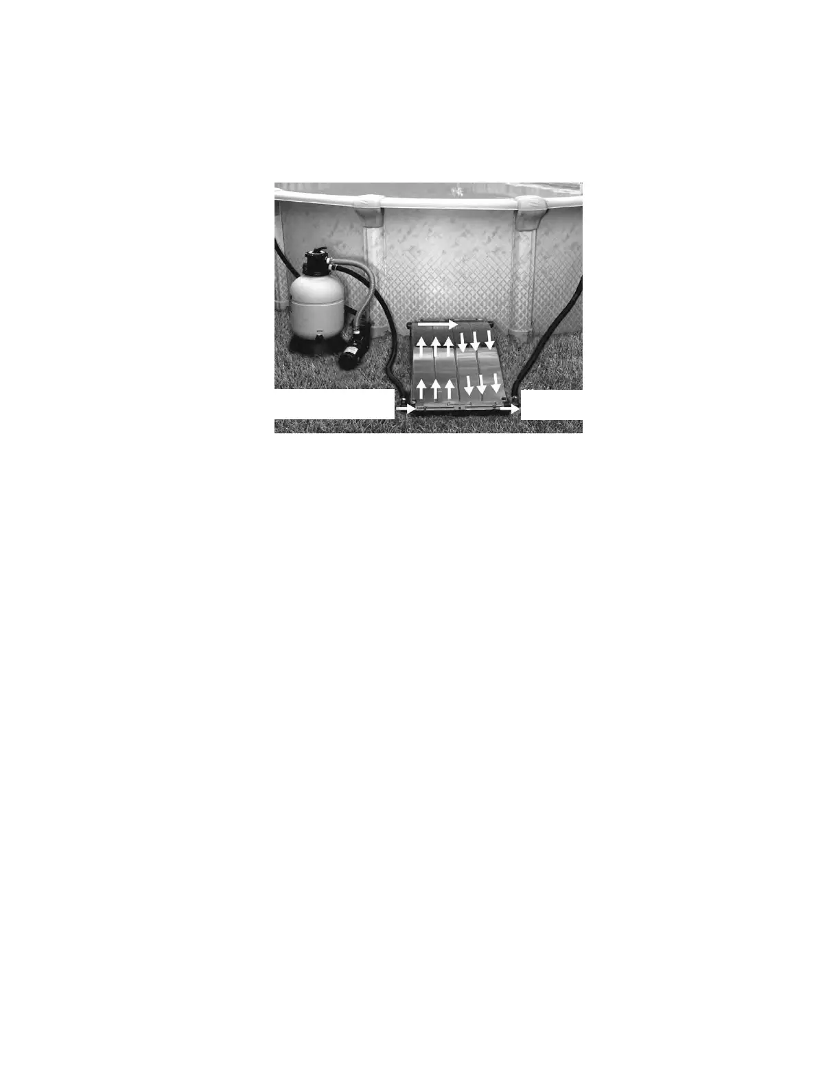 El calentador solar se debe instalar entre la bomba de filtración y la toma de retorno de agua. El