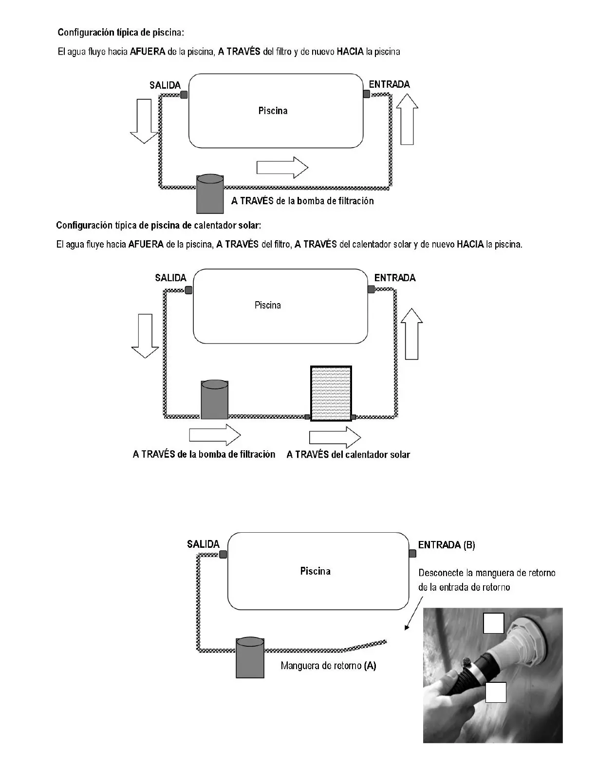 de retorno de la piscina (B).