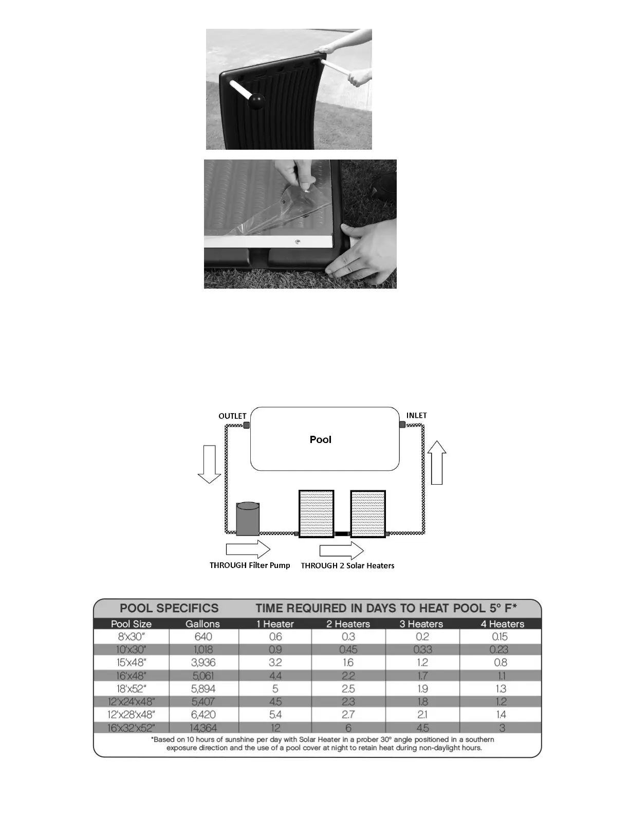 NOTE: Be sure to place a solar blanket on at night to help retain the heat generated by the Solar Heater.