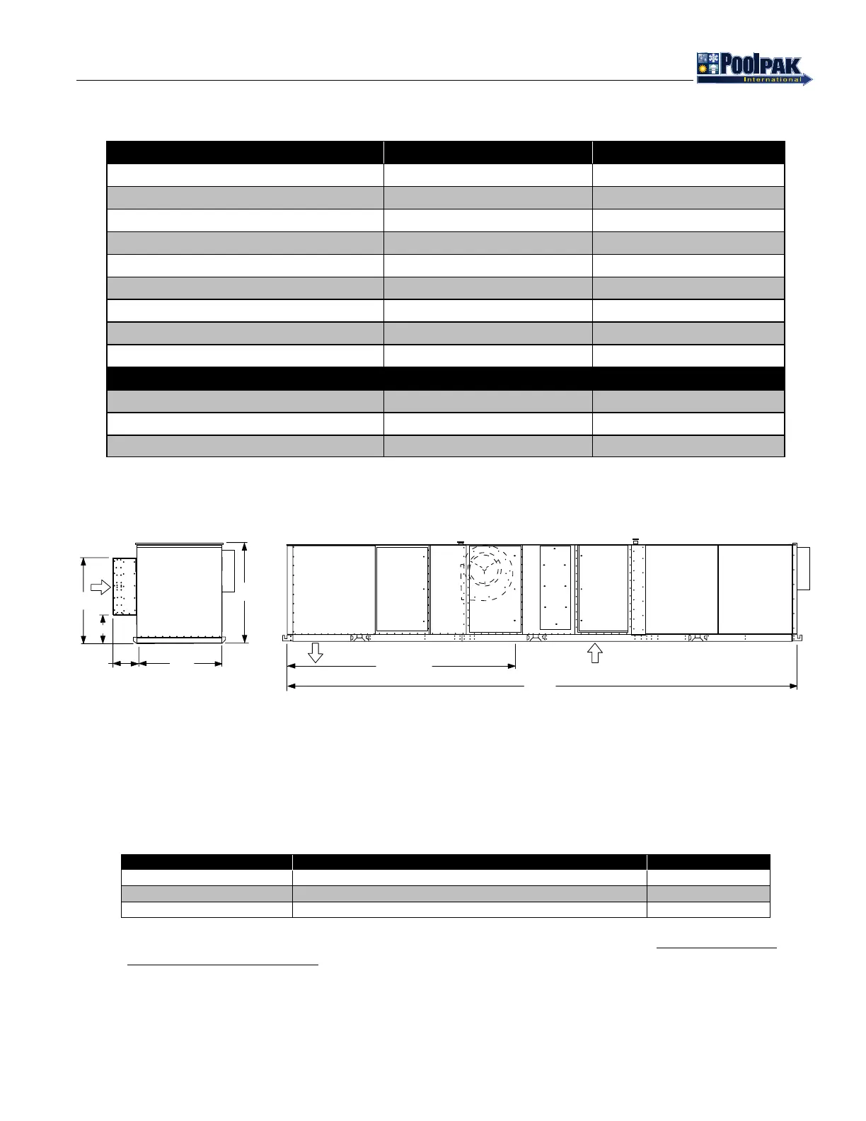 PoolPak AW 1400 - Section III: Performance and Sizing; Technical Summary; Dimensional Data; RoofPak Weights
