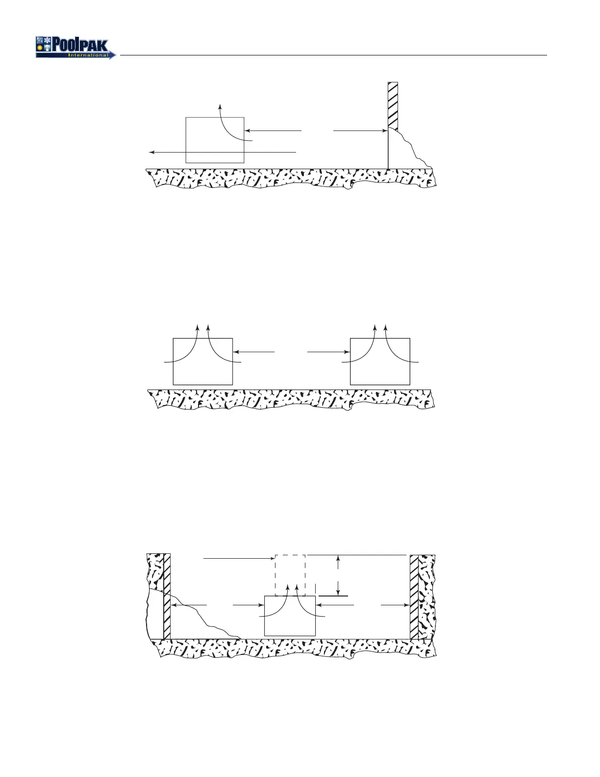 The top of the unit should be level with the top of the pit and side distances increased to “2W”. If the top of the units is