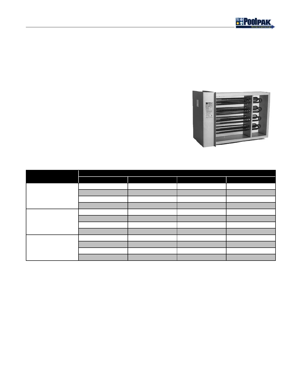 PoolPak AWH 3500 - Electric Duct Heater; Table 3-9. Duct Sizes; Figure 3-5. Duct Heater