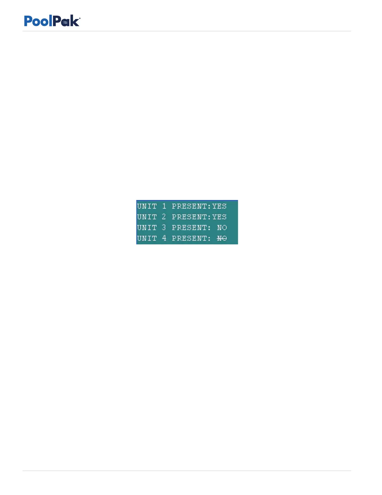 The figure above shows the first screen that displays the status of units one through four as present or not. Use