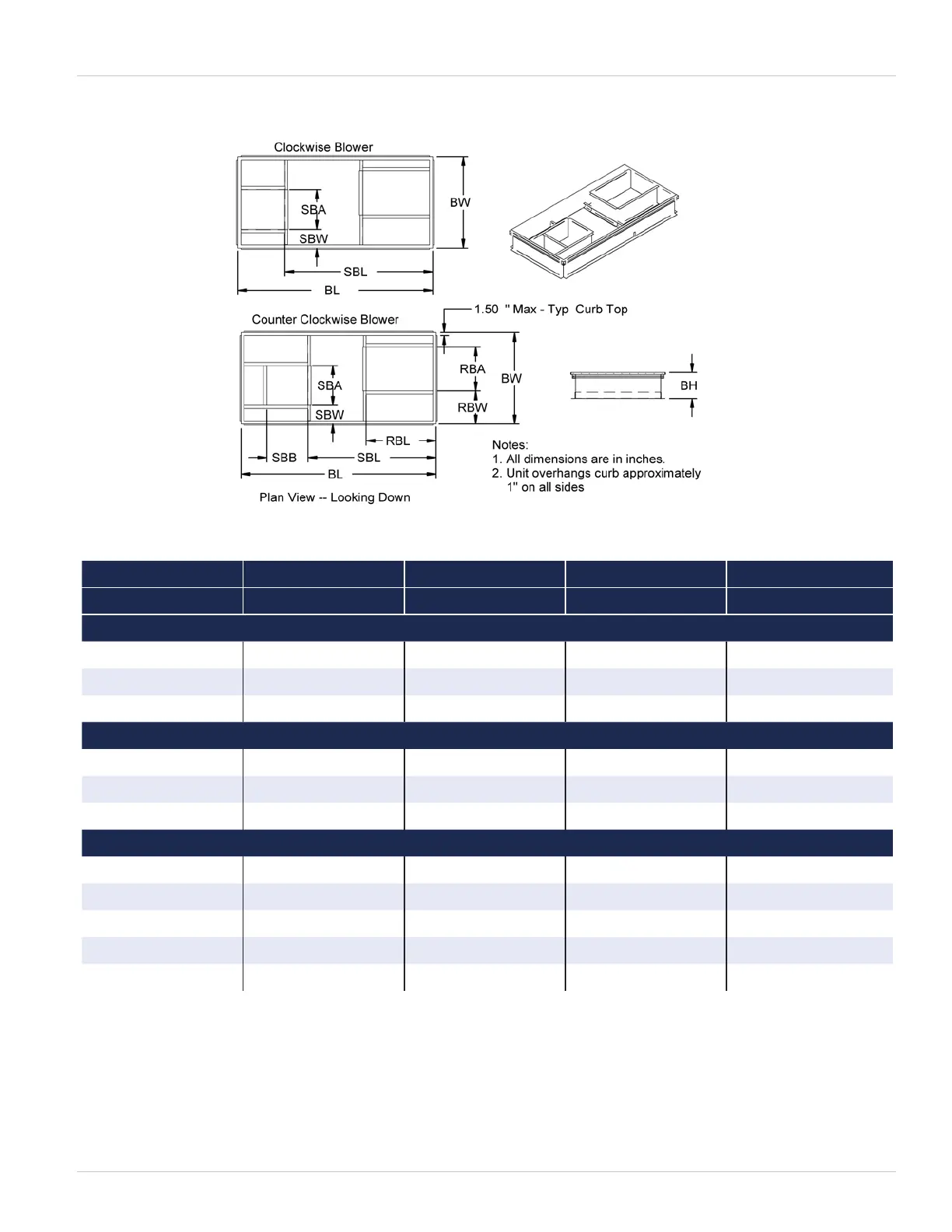 Table 4-1. Horizontal ComPak Curb Dimension