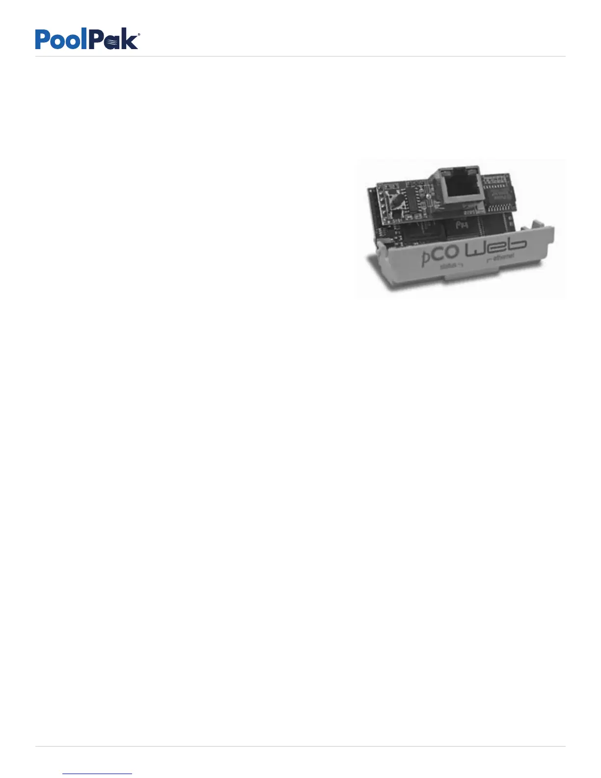 (BAS). Based on Carel’s pcoWeb serial card, the interface allows connection to an Ethernet network. 80 control points,