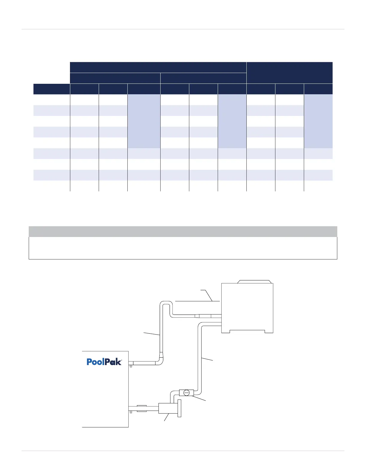 piping layout not within these limits nor receiving prior PoolPak Factory approval will not be covered under PoolPak warranty.