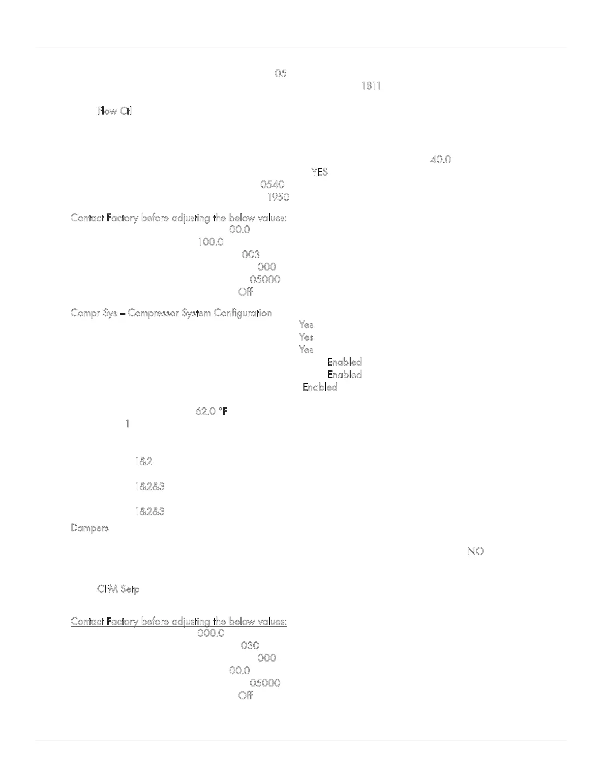 Contact Factory before adjusting the below values: